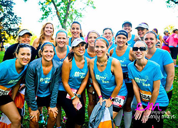 A group of women pose for a photo during a Moms on the Run event.